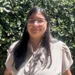 Portrait photo of Ingrid Salazar in front of hedge wall